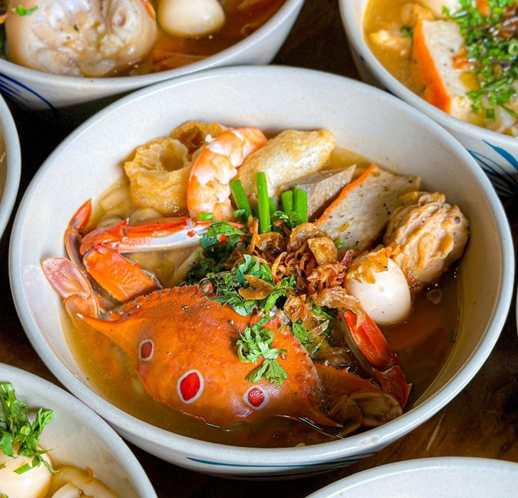 - Bánh canh cua: Món ăn đặc sắc với thịt cua tươi ngon, thêm chút rau thơm tạo nên hương vị khó quên.