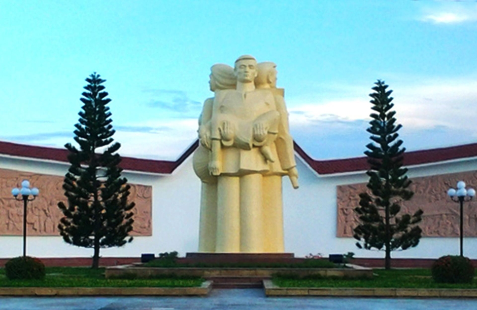 Khu Di tích lịch sử “ Địa điểm diễn ra cuộc đấu tranh Hà Lam - Chợ Được” có diện tích gần 9 nghìn m2, gồm nhiều hạng mục công trình và được trồng nhiều thảm hoa cỏ, cây xanh để tạo cảnh quan. Kiến trúc chính của khu tưởng niệm là tượng đài được xây dựng khá quy mô với một hình khối cao khoảng 5 m, thể hiện 3 người đứng tựa lưng vào nhau, bao gồm: một cụ già cầm chắc cây gậy trên tay, một cô gái đang cầm nón lá và một thanh niên đang bồng một em bé bất động trên tay.