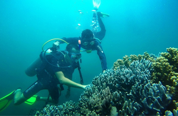 Cù Lao Chàm có rất nhiều san hô. Hầu hết các tour du lịch Cù Lao Chàm đều có hoạt động lặn ngắm san hô. Nếu đi tự túc, khách có thể mua vé ở ngay bến tàu hoặc nhà nghỉ. Các dịch vụ phổ biến bao gồm: Đi bộ dưới biển, lặn ngắm san hô (lặn nông), lặn bình khí (lặn sâu). Giá dao động từ 200.000 đồng đến 1 triệu đồng một lần tùy loại.
